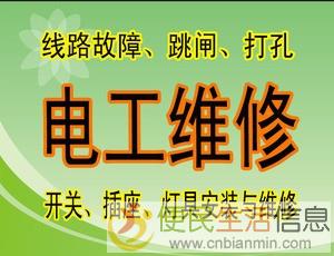 专业从事电工380V动力电维修220V电力维修上门维修电路,电路故障维修 灯具安装,线路跳闸。承接家庭、单位、机关、学校及小区老旧线路更换、维修、铺设,强弱电路改造、高低压综合布线电工安装维修,家庭日常维修灯具、开关、插座、闸刀、配电箱1、电路故障维修——电路短路‘电路 漏电、插座短路、插座漏电,灯具没电、插座没电,其它原因经常掉闸、合不上闸等故障维修。2、电路按装改造灯具安装及更换(吊灯、吸顶灯、装饰灯、彩灯、水晶灯等等灯具)插座按装及更换、电闸按装及更换、室内电路改造、室内电路换线、饭店后厨电路改造等。弱电类:专业办公室工位布线、网络维护、中小企业办公室布线、布电源线、网线电话线、办公室线路整理!专注于安防行业,经过多年的稳健经营,我司有一批专业的安装技术人员,师资力量雄厚,从事安防多年,、做事效率快,得到广大市民良好口碑与支持范围包括:小区、写字楼、别墅、酒店、宾馆、医院、学校、银行、厂房仓库、超市商铺政府机关,价格合理,质量保证。jEoa